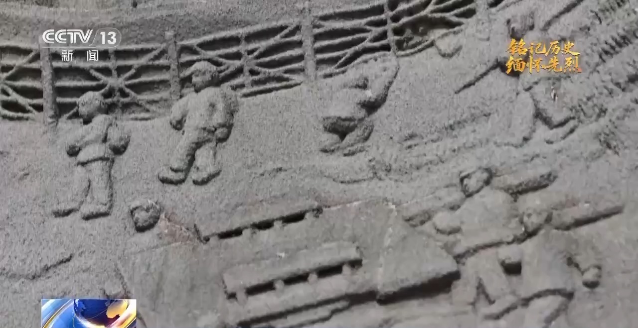 总台记者 任秋宇:北靠山村曾是东北抗联第六军的重要后勤补给地和兵员来源地,这有个石雕画反映出抗日战争时期军民鱼水情深的故事,这个故事叫“抬车送粮”,就发生在北靠山村。